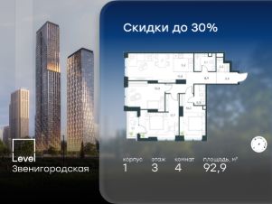 В жилом квартале продаётся 4-комнатная квартира площадью 92.90 кв.м white box. Квартира расположена на 3 этаже 48 этажного корпуса 1 в жилом комплексе комфорт класса Level Звенигородская (компания Level Group/Левел групп).