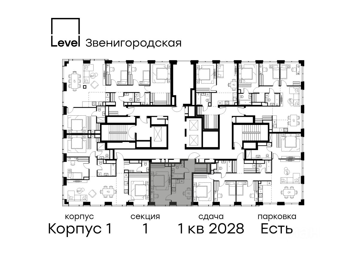 В жилом квартале продаётся 1-комнатная квартира площадью 38.30 кв.м white box. Квартира расположена на 42 этаже 48 этажного корпуса 1 в жилом комплексе комфорт класса Level Звенигородская (компания Level Group/Левел групп).