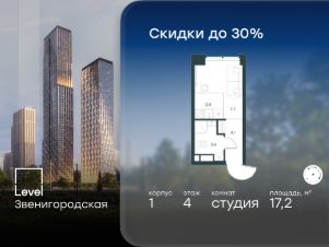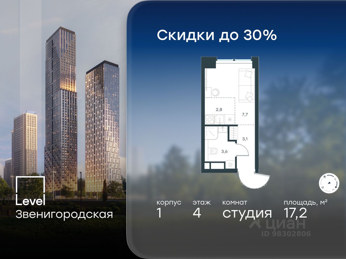 В жилом квартале продаётся студия площадью 17.20 кв.м white box. Квартира расположена на 4 этаже 48 этажного корпуса 1 в жилом комплексе комфорт класса Level Звенигородская (компания Level Group/Левел групп).