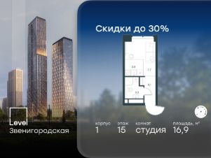В жилом квартале продаётся студия площадью 16.90 кв.м white box. Квартира расположена на 15 этаже 48 этажного корпуса 1 в жилом комплексе комфорт класса Level Звенигородская (компания Level Group/Левел групп).