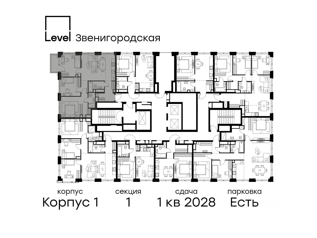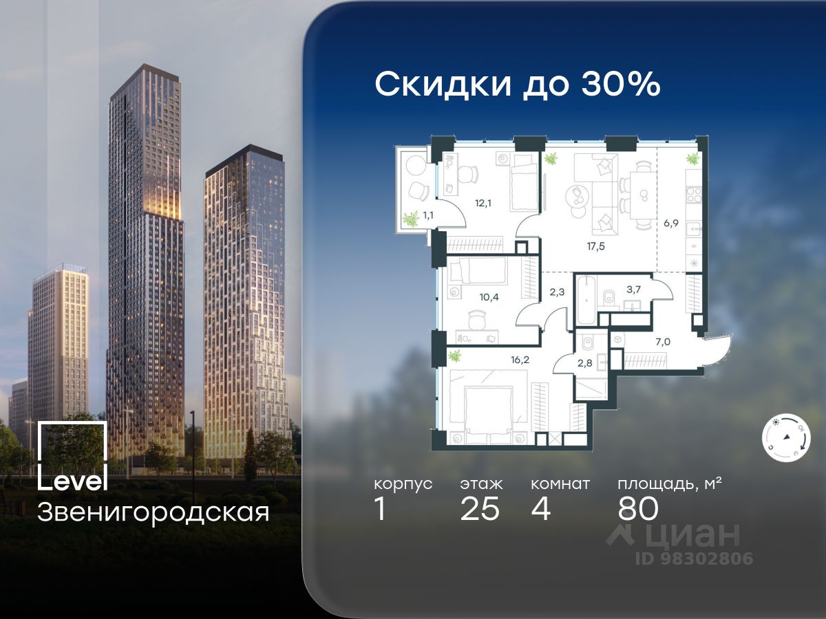 В жилом квартале продаётся 4-комнатная квартира площадью 80.00 кв.м white box. Квартира расположена на 25 этаже 48 этажного корпуса 1 в жилом комплексе комфорт класса Level Звенигородская (компания Level Group/Левел групп).