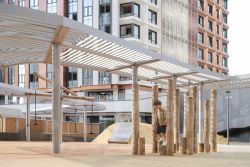 В ЖК продуманная, богатая инфраструктура из трех зон. В основной входной группе сконцентрированы все блага современного мегаполиса: супермаркет, ресторан, фитнес-клуб, аптеки, салоны красоты и кофейня. Под шумные детские игры отведен нижний уровень, мы предусмотрели игры как для самых маленьких, так и для деток постарше. Для досуга взрослых есть места для спорта, занятий йогой, шезлонги и деревянные террасы для отдыха.