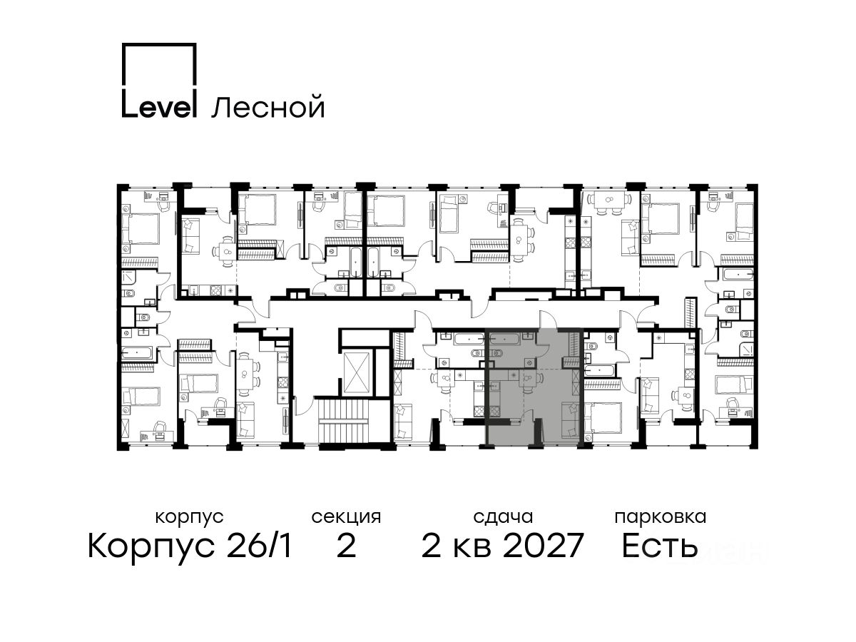 В районе, утопающем в густой зелени лесов, многочисленных парков и скверов, продаётся студия площадью 26.90 кв.м с отделкой white box. Квартира расположена на 2 этаже в жилом комплексе комфорт-класса Level Лесной (компания Level Group/Левел групп).