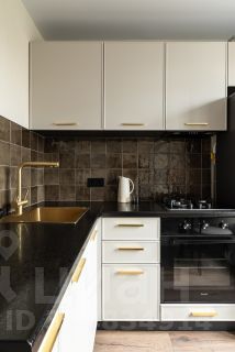 Кухня укомплектована новой техникой: посудомоечная машина, газовая плита, электрическая духовка, вытяжка, холодильник. Есть возможность подключить фильтр к смесителю и установить измельчитель.