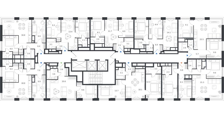 между квартирами светлые холлы. керамогранитный пол, энергоэффективная подсветка и цветовые акценты. никакой монотонности.