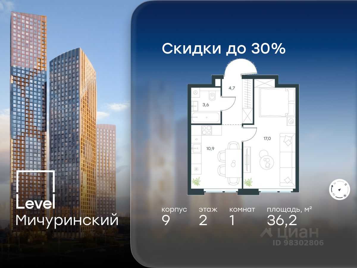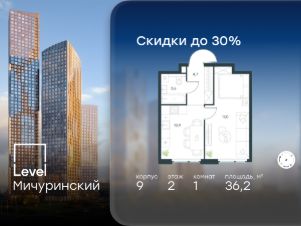 В жилом квартале, расположенном на границе с природным заказником "Долина реки Очаковки", продаётся 1-комнатная квартира площадью 36.20 кв.м без отделки. Квартира расположена на 2 этаже 12-этажного корпуса 9 в жилом комплексе бизнес-класса Level Мичуринский (компания Level Group/Левел групп).