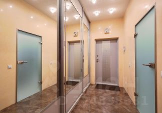 В зоне прихожей — встроенные зеркальные шкафы, визуально расширяющие пространство и обеспечивающие дополнительное хранение, включая большое отделение для чемоданов и дорожных сумок.