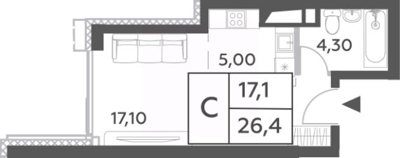 Продается квартира-студия на 31 этаже в строящемся доме (Корпус 1/Башня Creativity).