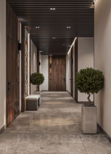 На первых этажах домов - просторные и функциональные входные группы, где предусмотрено все: мягкий интерьер в природных тонах, дизайнерская отделка натуральным деревом и камнем, панорамные окна с видом на лес, помещения для хранения колясок и спортивного инвентаря, а также специальные подъемники для маломобильных жителей.