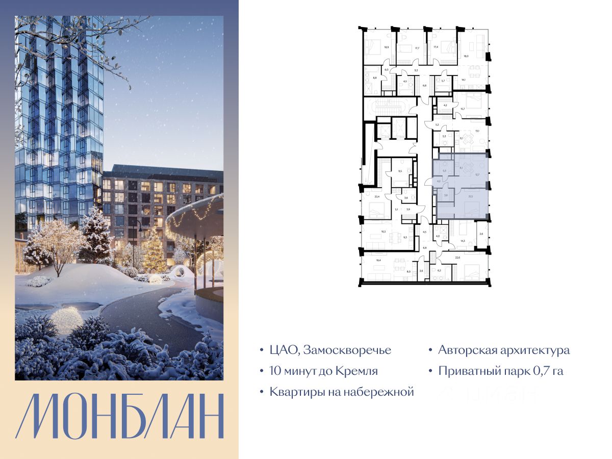 В элитном жилом комплексе "Монблан" на Шлюзовой набережной в Замоскворечье напрямую от девелопера ГК "Галс-Девелопмент" представлена 1-комнатная квартира квартира на 6 этаже общей площадью 53.40 м².