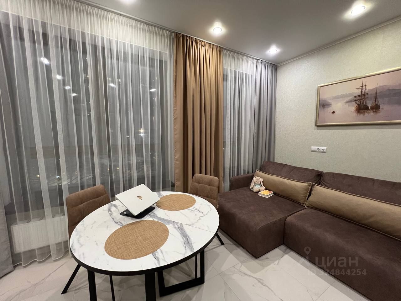 В квартире выполнен качественный ремонт, сделана шумоизоляция, панорамные окна от застройщика. Вся мебель и техника остаются вам. Проживал только собственник, в аренду никогда не сдавалась. Это решение для тех, кто ценит время и комфорт.
