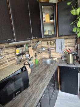 Квартира светлая и уютная, с удобной планировкой. Недавно сделан косметический ремонт для себя. На Кухне установлены встроенная кухонная мебель, стол и диван. Санузел совмещённый.