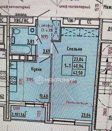 Жилая комната 23,04 кв.м., кухня 10,4 кв.м., коридор 3,69 кв.м., ванная комната 3,81кв.м.