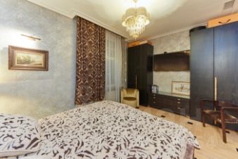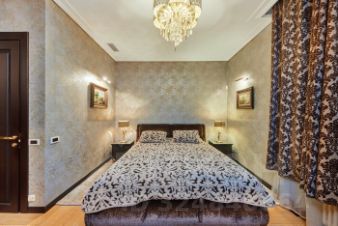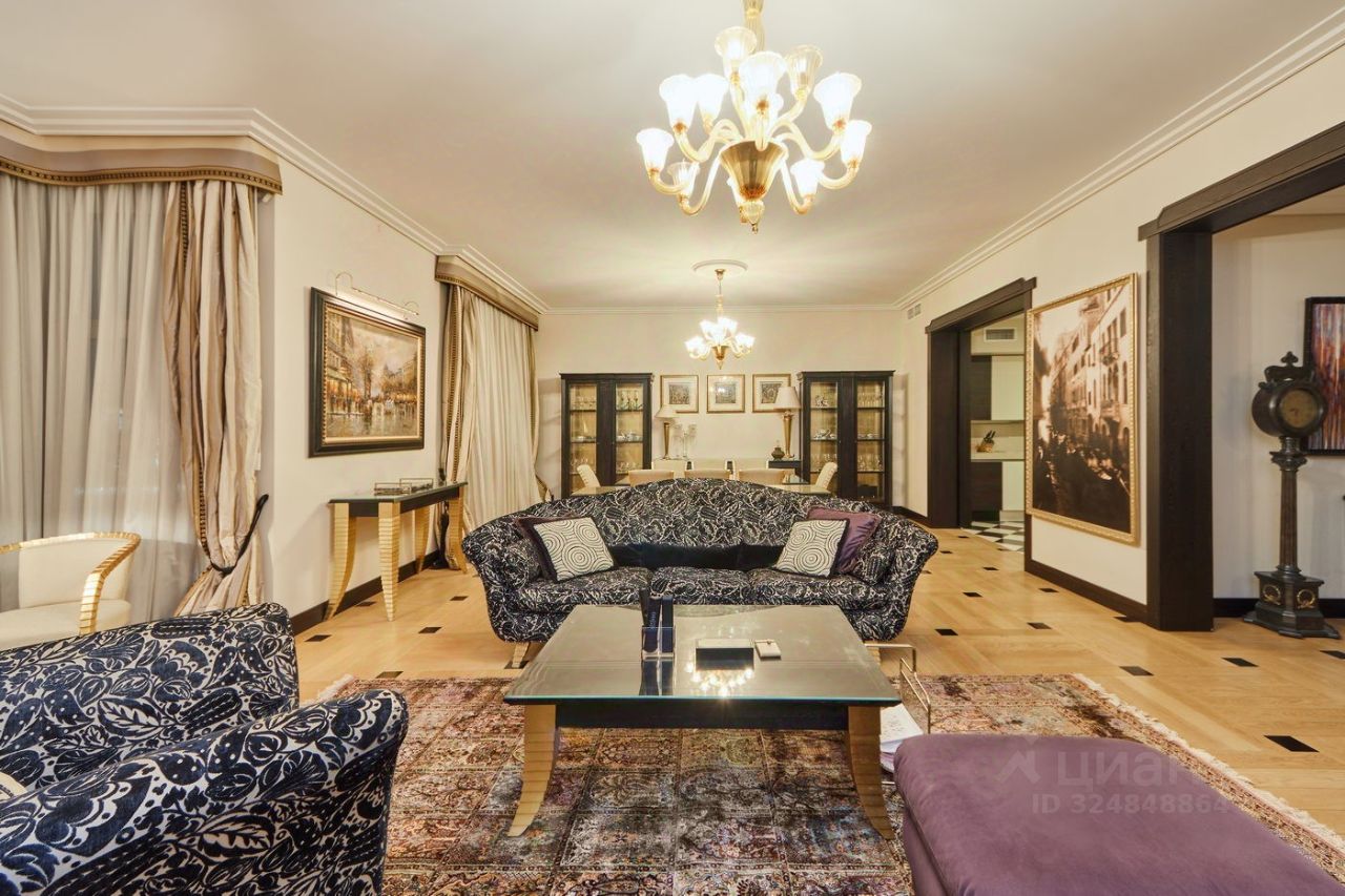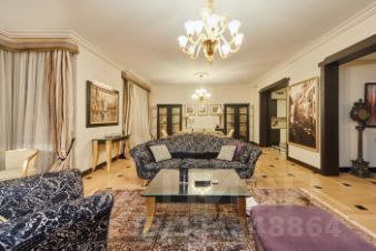 Антикварное зеркало, декоративный камин и спускающиеся с потолка эксклюзивные 2,5-метровые люстры из Италии дополняют общую картину, выдержанную в классических московских традициях.