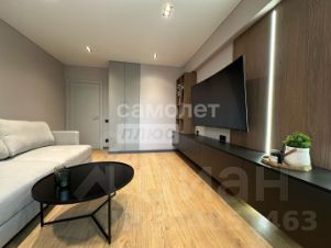 Общая площадь квартиры 55,7 м2: гостиная 14,7 м2, спальня 18 м2 + гардеробная 4 м2, кухня 7 м2, санузел раздельный, застекленный балкон из зала.