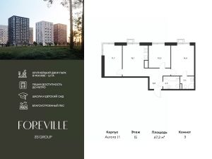 Пешая доступность от метро и московская прописка! Продается уютная 3-комн. квартира площадью 67,2 кв.м на 15 этаже 17 этажного жилого комплекса бизнес-класса Foreville от 3S Group. Общая площадь: 67,2 кв.м., жилая: 36,6 кв.м., площадь кухни-гостиной: 16,1 кв.м., высота потолков: 3 м., окна выходят на улицу. Квартира предлагается без отделки, что идеально подходит для воплощения собственного дизайнерского решения. Также доступна опция предчистовой отделки, стоимость которой включается в общую цену квартиры. О проекте: Пространство Комплекс располагает крупнейшим приватным двор-парком в Новой Москве площадью 1,2 Га, предлагая жителям огромное пространство для отдыха, спорта и игр на свежем воздухе. Природный ландшафт Внутренний лесопарк с более чем 183 взрослыми деревьями и 10 320 цветущими кустарниками создает уникальную природную атмосферу для каждого времени года. Игровые и спортивные зоны Обширные площадки с безопасным покрытием, специализированные зоны для детей разных возрастных групп и взрослых, включая воркаут и настольный теннис, способствуют активному и здоровому образу жизни. Экологичность и долговечность Использование натуральных материалов, таких как лиственница, и крупноформатной бетонной плитки для покрытия, подчеркивает стремление проекта к экологичности и устойчивости. Безопасность и уединение Внутренний двор без машин обеспечивает безопасность для детей и спокойствие для взрослых. Территория огорожена и находится под круглосуточным видеонаблюдением. Сохранение времени Благодаря превосходной транспортной доступности и близости к новой станции метро Корниловская, Foreville позволяет жителям экономить время для семьи и отдыха на природе, минимизируя необходимость длительных поездок. Foreville не просто жилье, а целая экосистема для комфортной и гармоничной жизни на свежем воздухе, совмещая преимущества городской инфраструктуры и непосредственную близость к природе.