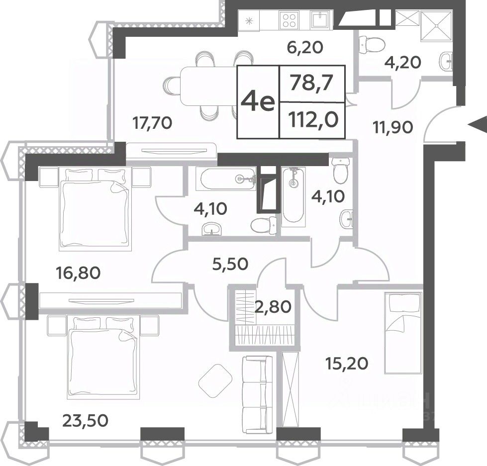 Общая площадь112 м²