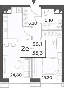 Общая площадь квартиры 53.8 м2 и высота потолков 3.1 м. Устанавливаются премиальные окна Schuco с панорамным остеклением с функцией проветривания, конвекторы в полу. Светлая квартира с большой кухней-гостиной 24 м2 и большим санузлом 5 м2. Окна квартиры на юг, юго-восток с потрясающими видами на природный заказник Долины реки Раменка, на район Раменки и МГУ. На каждом этаже есть технические балконы для установки системы кондиционирования.