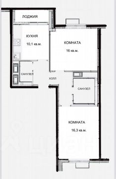 Общая площадь составляет 56.1 кв. м (без учета лоджии), две изолированные комнаты 16 и 16,3 кв. м, на разные стороны ( распашонка), два санузла, в гостевом санузле можно обустроить гардеробную, кухня 10,1 кв. м. + застекленная лоджия с выходом из кухни. Окна все во двор, корпус удален от проезжей части.