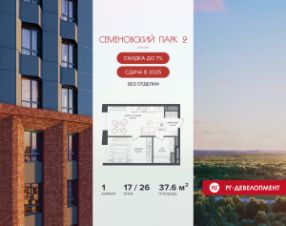 Продается 1-к квартира 37,6 кв.м. в ЖК "Семеновский парк 2" на 17-м этаже 26 этажного дома.