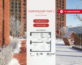 Продается 1-к квартира 46,3 кв.м. в ЖК "Семеновский парк 2" на 6-м этаже 18 этажного дома.