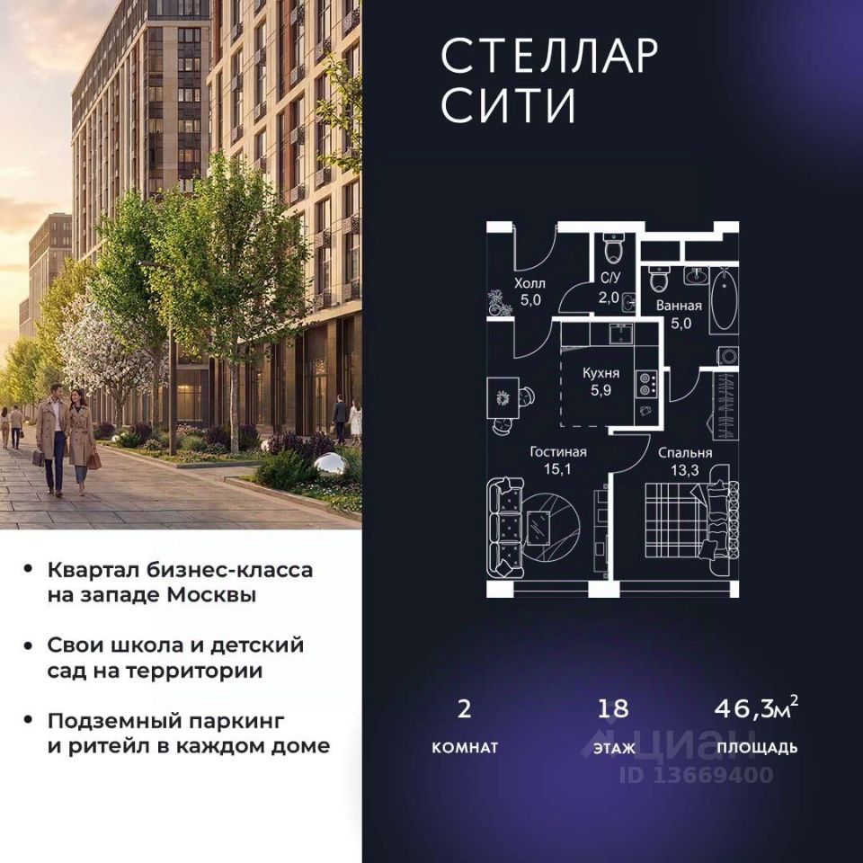 Продается квартира от надежного застройщика Tashir Estate в квартале бизнес-класса Stellar City в ЗАО Москвы.
