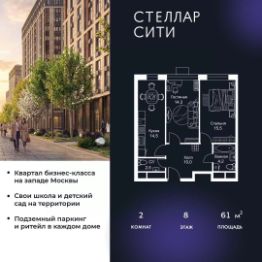 Квартира находится на 8 этаже, 4 корпуса жилого квартала Stellar City — микрогорода будущего на орбите Москвы.
