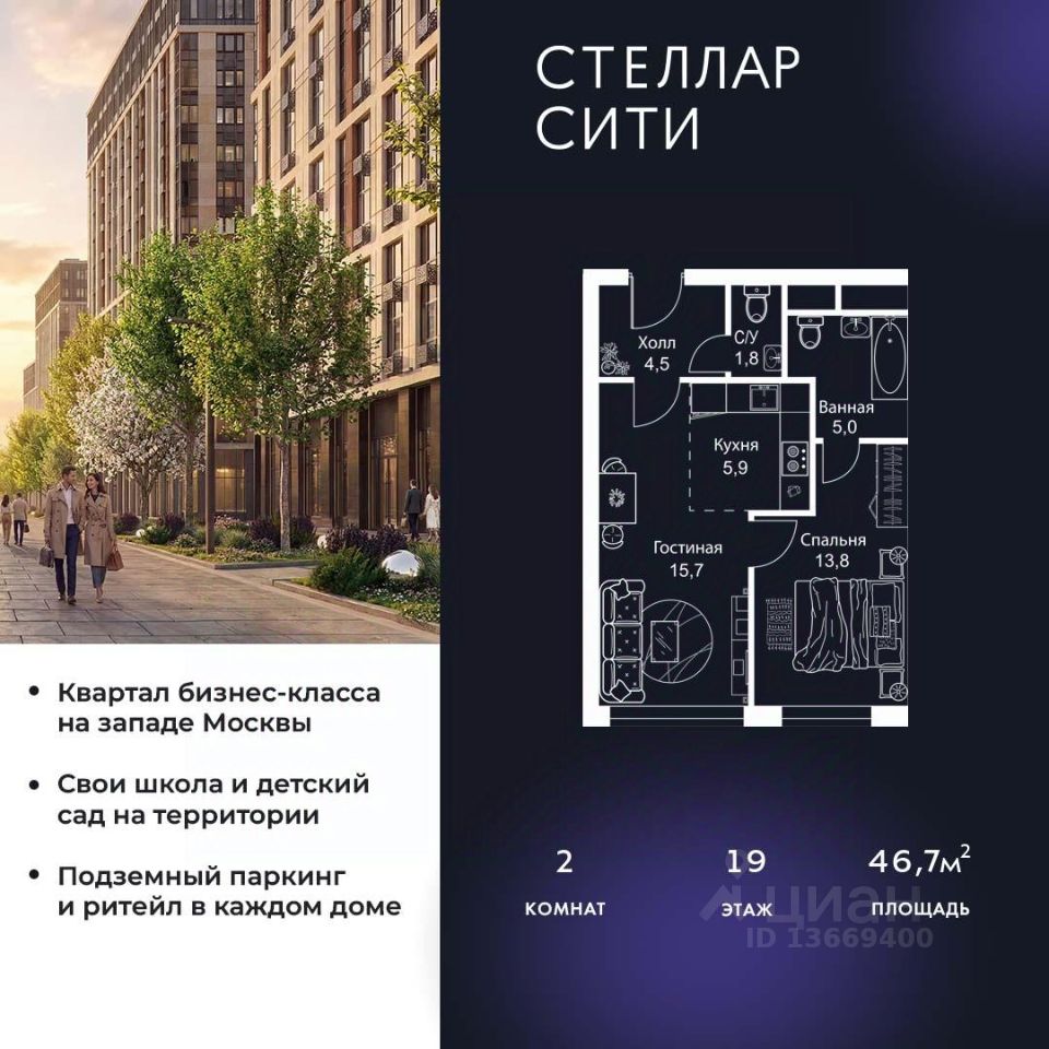 Продается квартира от надежного застройщика Tashir Estate в квартале бизнес-класса Stellar City в ЗАО Москвы.