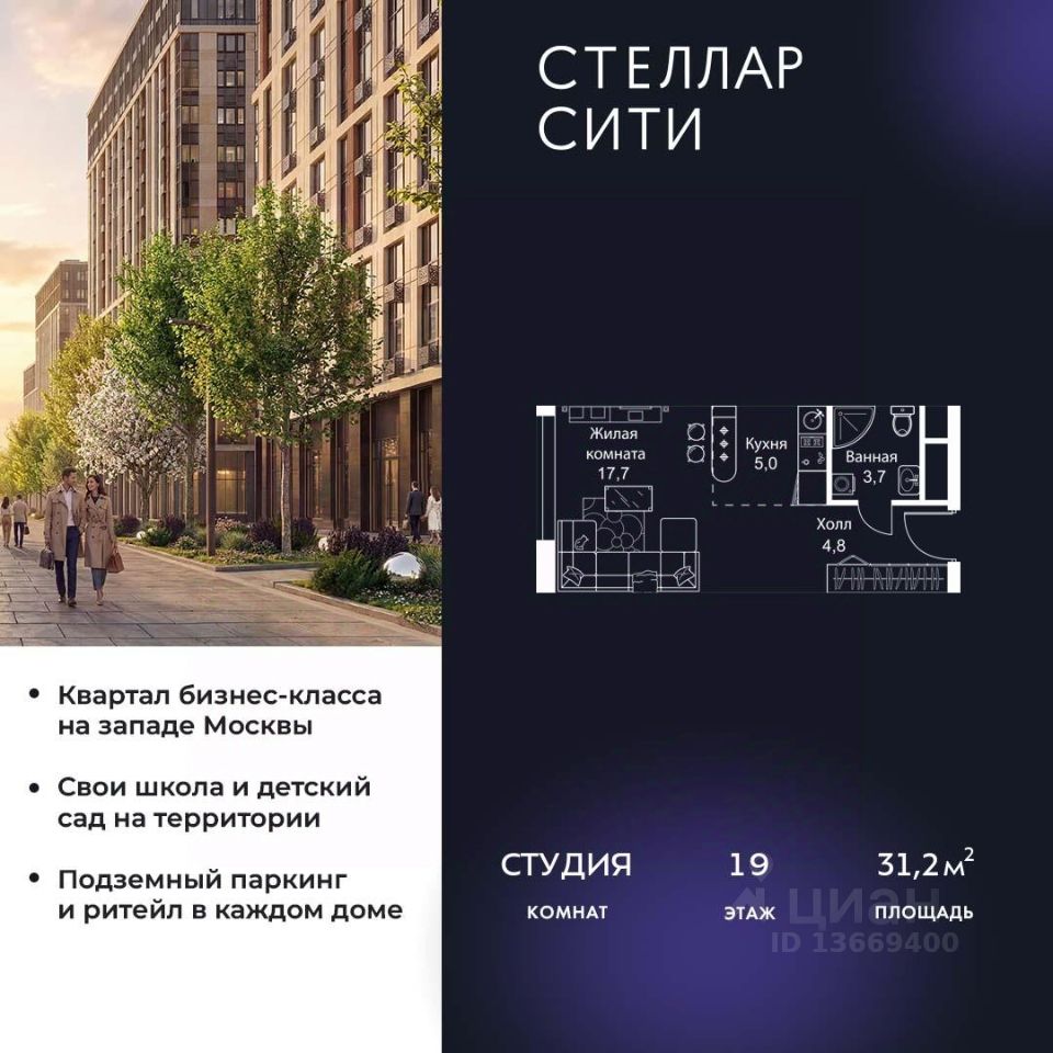 Продается квартира от надежного застройщика Tashir Estate в квартале бизнес-класса Stellar City в ЗАО Москвы.