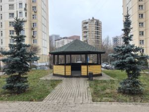 Большой зеленый двор с детской площадкой, спортивной коробкой (зимой каток), а также с огороженной площадкой для выгула собак.