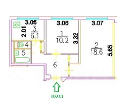 Продается 2-комнатная квартира. Общая площадь - 45,8 кв.м., жилая площадь - 28,8 кв.м. (комнаты изолированные 18,6-10,2 кв.м.), кухня - 6,1 кв.м.