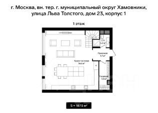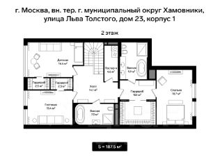 Предлагаем вашему вниманию стильную 4-х комнатную квартиру-таунхаус с двумя уровнями общей площадью 188 м², расположенную в самой престижной части столицы - Хамовниках.