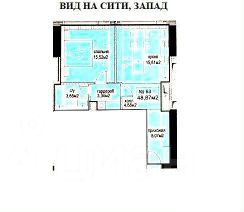 Однокомнатная квартира расположена на 19 эт. в башне Сity Тоwеr (корпус Б), 49 кв.м (гардеробная 3,34; кухня 15,61; прихожая 6,07; с/у 3,65; спальня 15,52; холл 4,68).