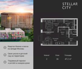 Продается квартира от надежного застройщика Tashir Estate в квартале бизнес-класса Stellar City в ЗАО Москвы.
