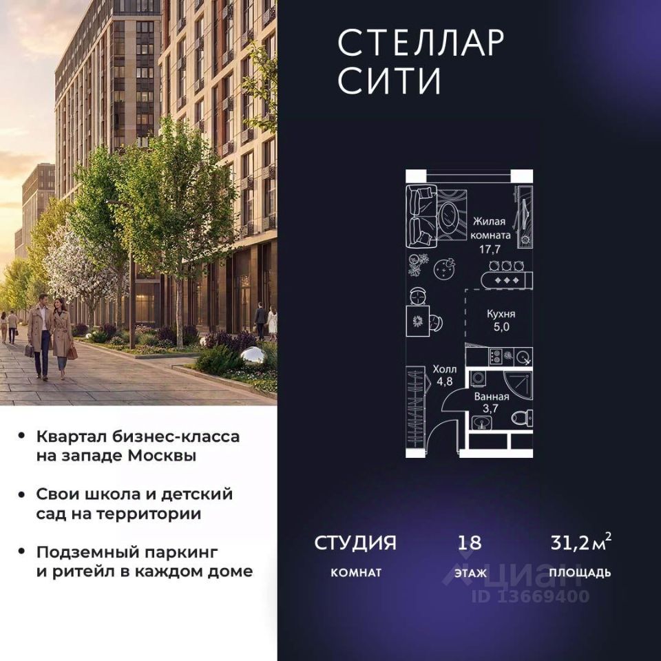 Продается квартира от надежного застройщика Tashir Estate в квартале бизнес-класса Stellar City в ЗАО Москвы.
