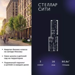 Продается квартира от надежного застройщика Tashir Estate в квартале бизнес-класса Stellar City в ЗАО Москвы.