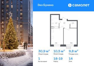 Строим кварталы для жизни с заботой о будущем. Предлагается 1-комнатная квартира комфорт-класса 30,9 кв.м в корпусе 18-19 на 14 этаже, в ЖК "Эко Бунино"