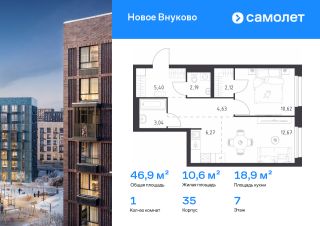 Строим кварталы для жизни с заботой о будущем. Предлагается 1-комнатная квартира комфорт-класса 46,94 кв.м в корпусе 35 на 7 этаже, в ЖК "Новое Внуково"