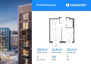 Строим кварталы для жизни с заботой о будущем. Предлагается 1-комнатная квартира комфорт-класса 38,86 кв.м в корпусе 34 на 7 этаже, в ЖК "Новое Внуково"