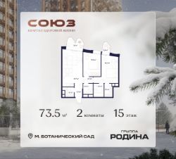 Продаётся 2-комнатная квартира площадью 73.5 м² на 15 этаже в Жилом Комплексе "Союз".