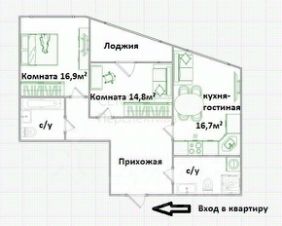 -2 изолированные комнаты ( 16,9 и 14,8 кв. метров)
