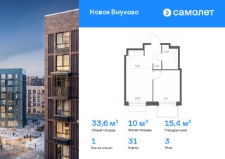 Строим кварталы для жизни с заботой о будущем. Предлагается 1-комнатная квартира комфорт-класса 33,56 кв.м в корпусе 31 на 3 этаже, в ЖК "Новое Внуково"