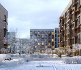 Жилой комплекс в окружении лесопарков и рядом с рекой. До станции МЦД-4 "Санино" можно дойти пешком за 7 минут, а на территории проекта появится транспортно-пересадочный узел с торговым центром. Для жителей построят школу, 2 детсада, в одном из которых будут развивающие кабинеты-трансформеры.