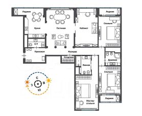 Мастер-спальня со своей ванной, две спальни, кабинет (или четвертая гостевая спальня), кухня и просторная гостиная со столовой зоной, два санузла, кладовая — все удобно и логично.25 этаж — панорамные виды на две стороны света: север и юг.