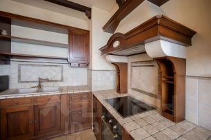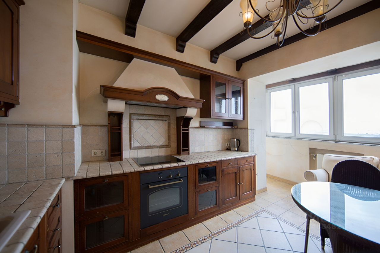 Классическая итальянская кухня из массива дерева - уже установлена: широкая рабочая зона, встроенная техника, уютная обеденная зона у окна.