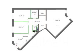 -Общая площадь 88.5 кв. м, жилая площадь — 55 кв. м, кухня — 12.5 кв. м.;