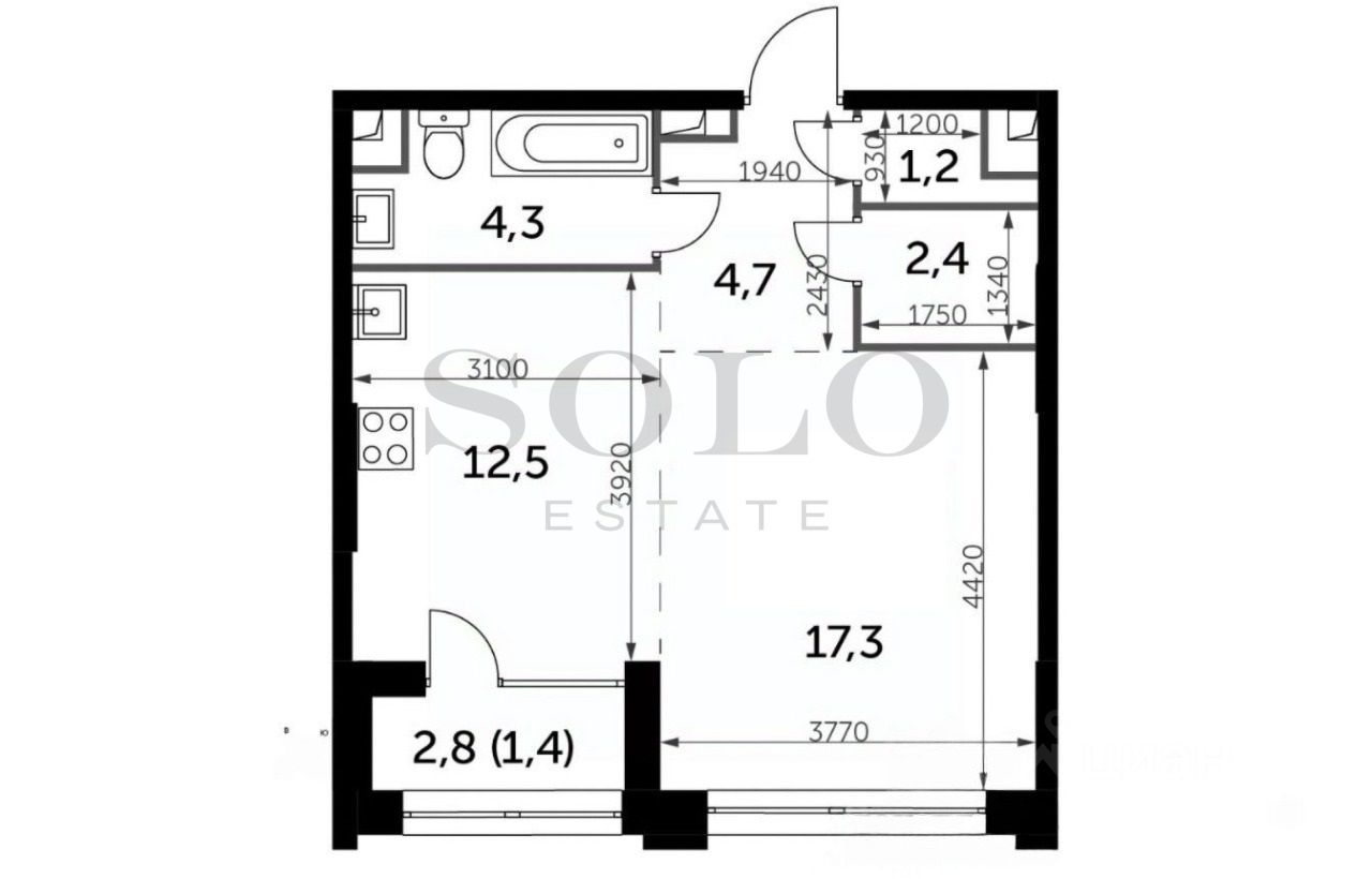 Планировка: просторная кухня-гостиная, спальня, ванная комната, гардеробная, лоджия.