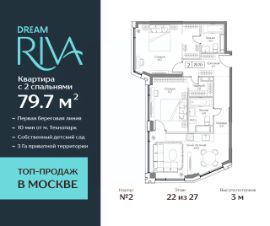Продаётся Квартира с 2 спальнями квартира на 22 этаже 27-этажного дома (2 корпус).