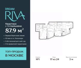 Продаётся Квартира с 3 спальнями квартира на 17 этаже 24-этажного дома (1 корпус).