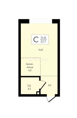 Студия продаётся без отделки, оптимальный этаж, прекрасные видовые характеристики. Потолки 3 метра, студия очень светлая.